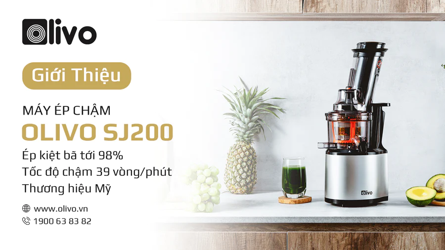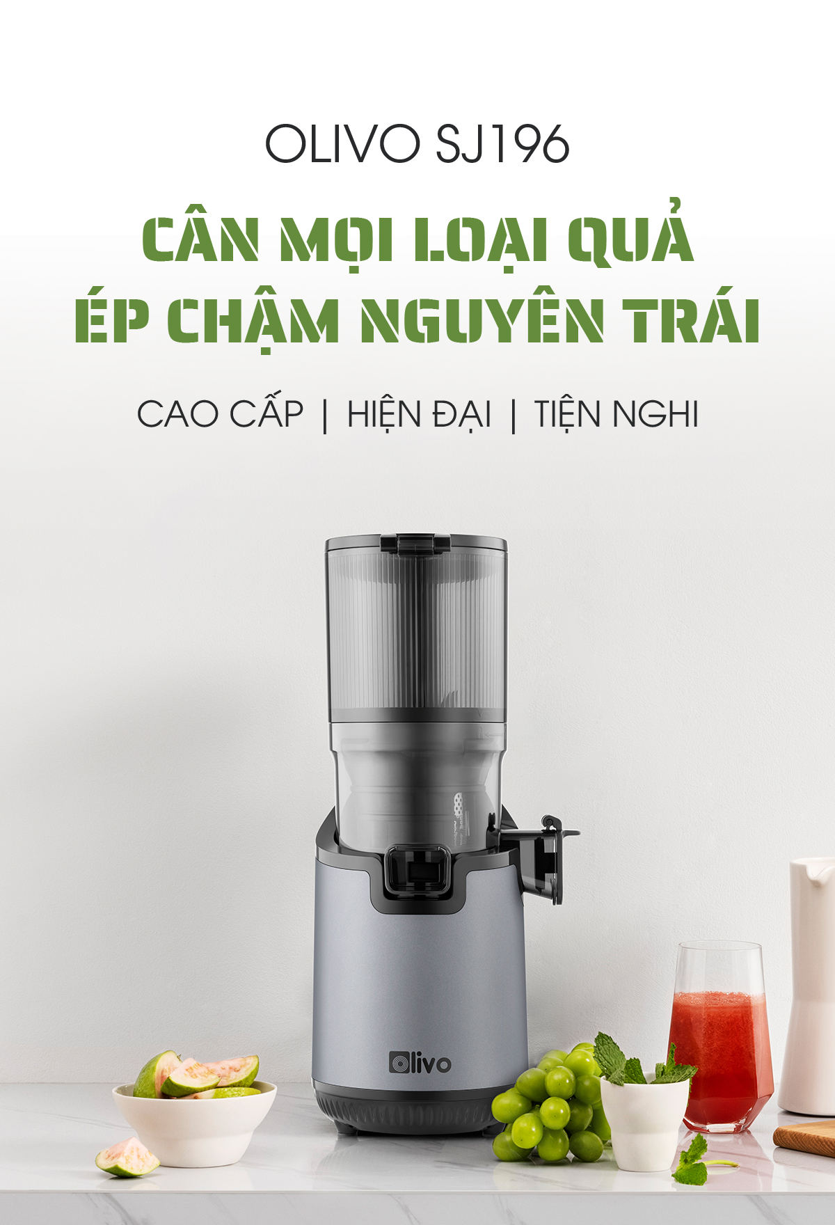 Máy Ép Chậm OLIVO SJ196 – Ép Trái Cây Nguyên Quả – Ép Rau Không Lo Kẹt Bã – Động Cơ AC Cao Cấp – Êm Nhất Thị Trường