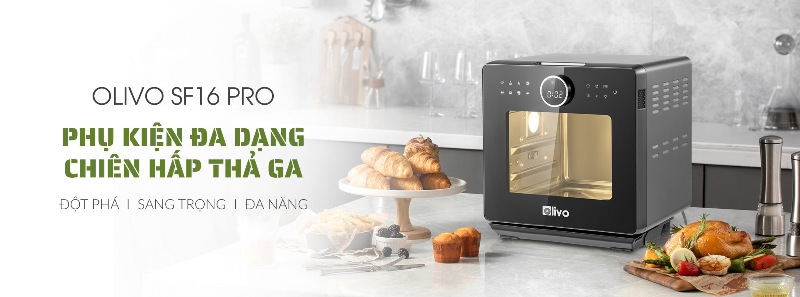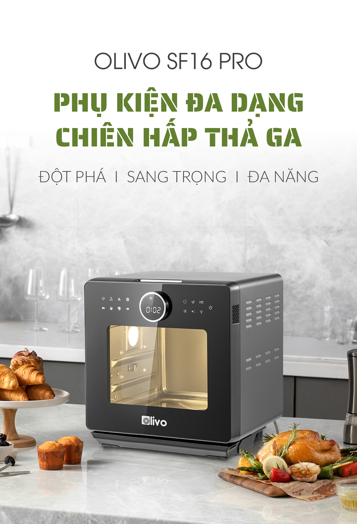 Nồi Chiên Hấp Đa Năng OLIVO SF16 PRO 2025 – Bản Nâng Cấp 70 Chế Độ Cài Sẵn, Toàn Bộ Khoang Nồi Và Phụ Kiện Bằng Inox 304 Cao Cấp, Dung Tích 16L, Vệ Sinh Dễ Dàng