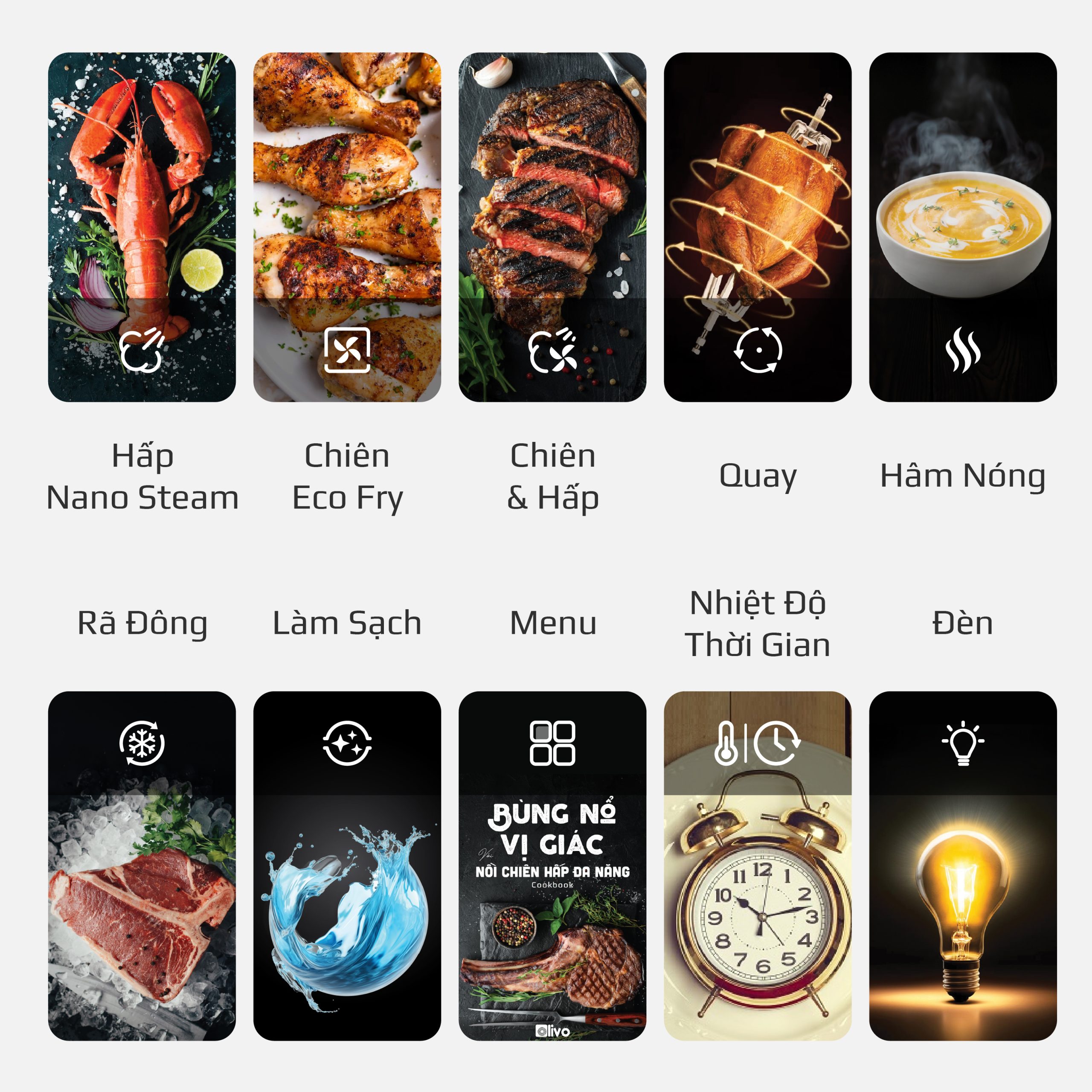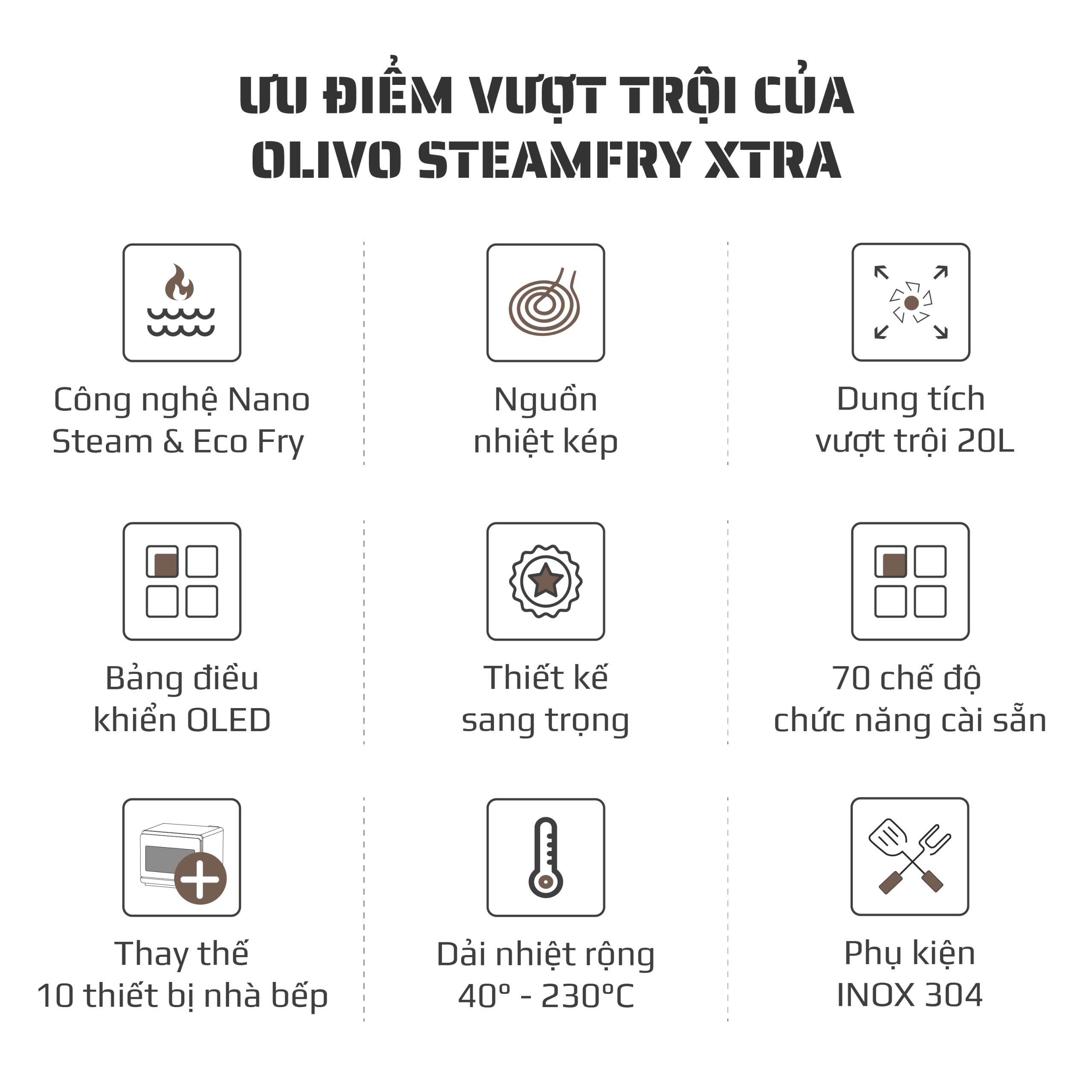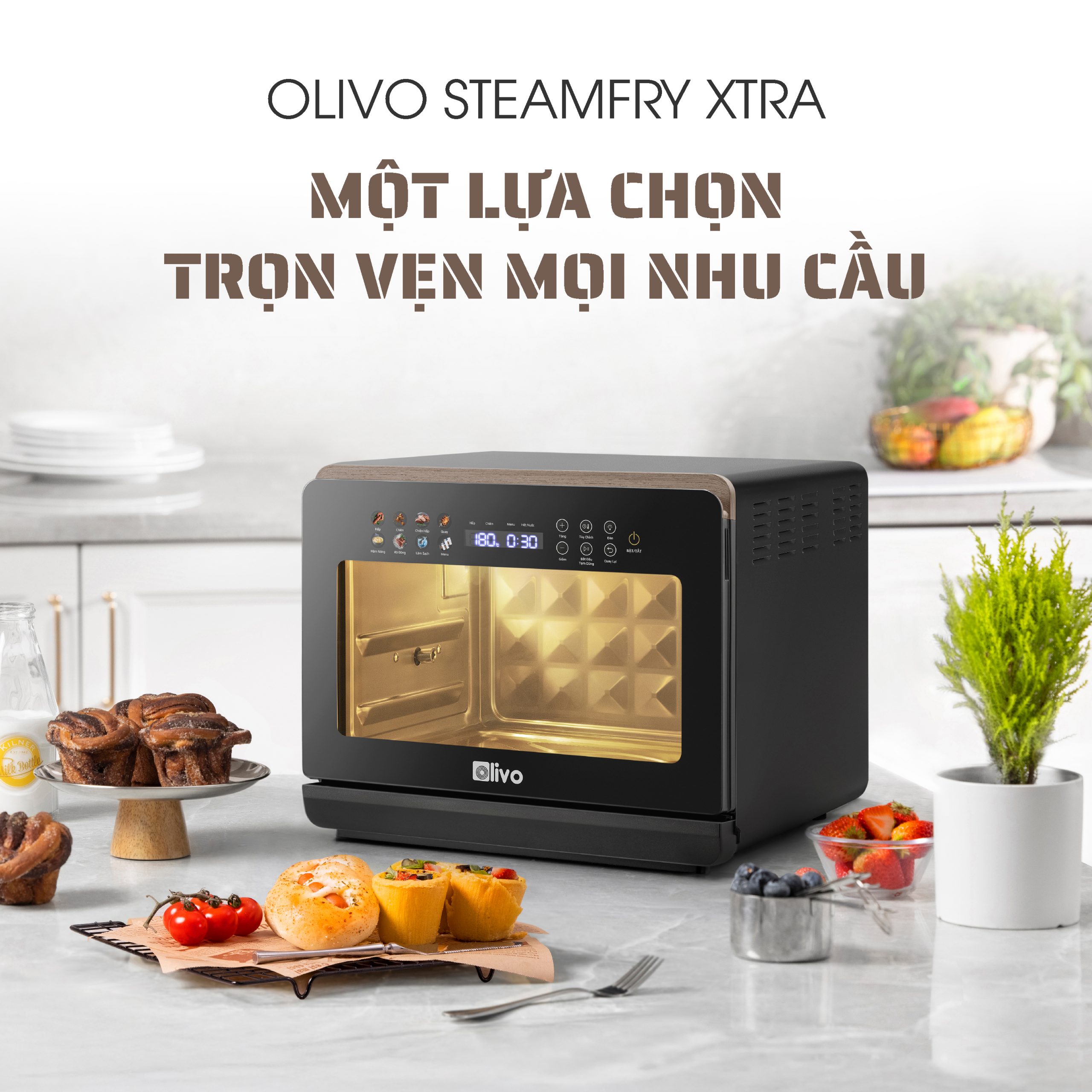 Nồi Chiên Hấp Đa Năng OLIVO SteamFry Xtra – Phiên Bản Cao Cấp, Bảng Điều Khiển OLED, Dung tích vượt trội 20L, Hấp Nano Steam/Chiên Eco Fry thế hệ thứ 2, 70 Chế Độ Cài Sẵn, Vệ Sinh Dễ Dàng